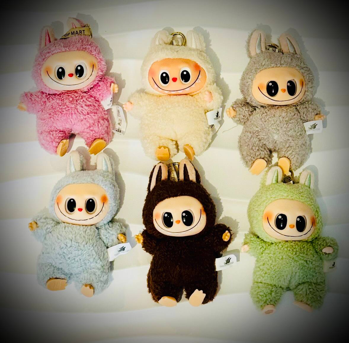 Hubane ja rõõmus istuv Labubu erinevates toonides ja meeleoludes. Mõni on unistaja, mõni naerusuine, mõni rahulikult silmad kinni – vali oma lemmik või kogu neid mitu! Need pehme olemusega tegelased toovad igasse ruumi soojust ning sobivad hästi nii riiulile kui ka kingituseks. Replica